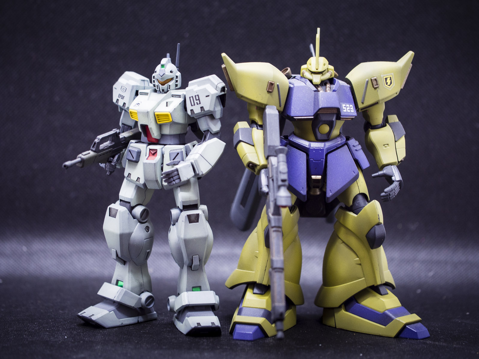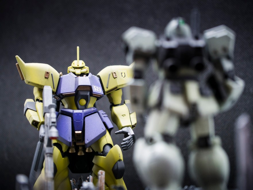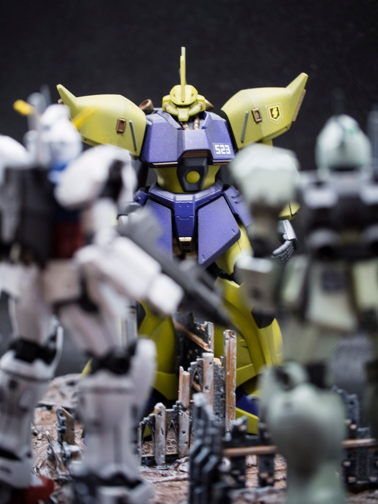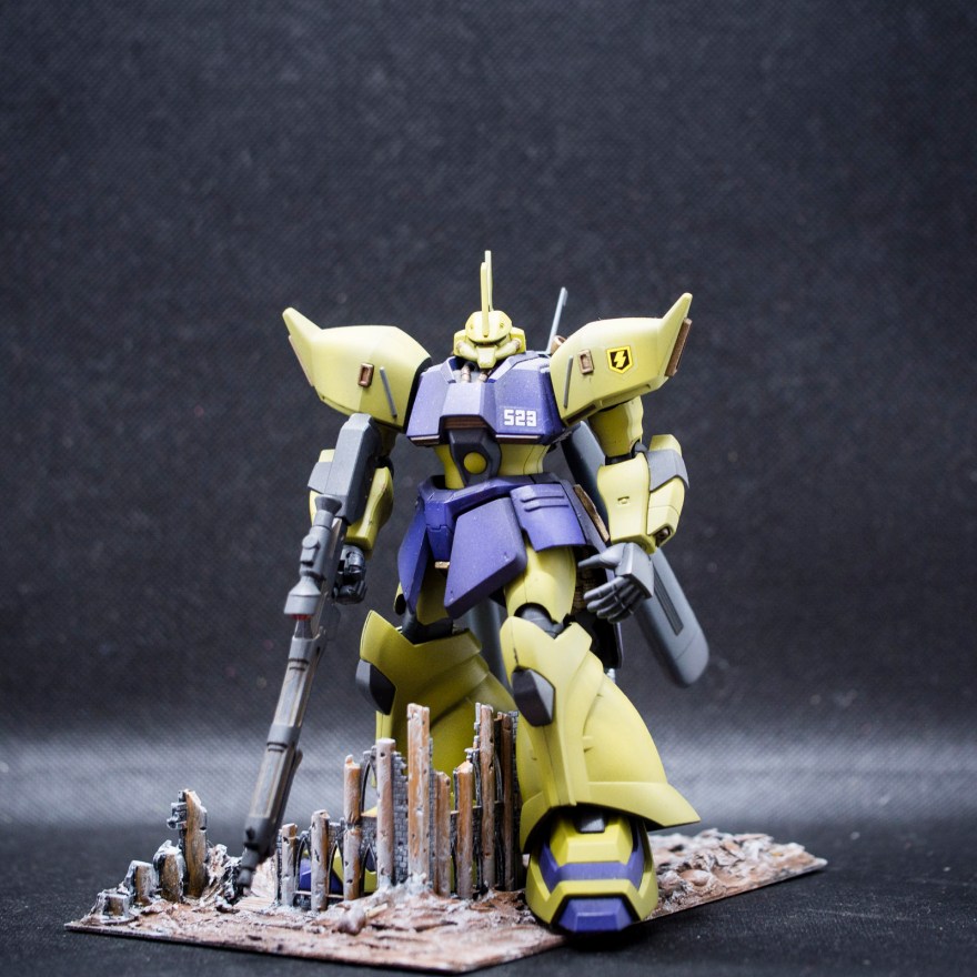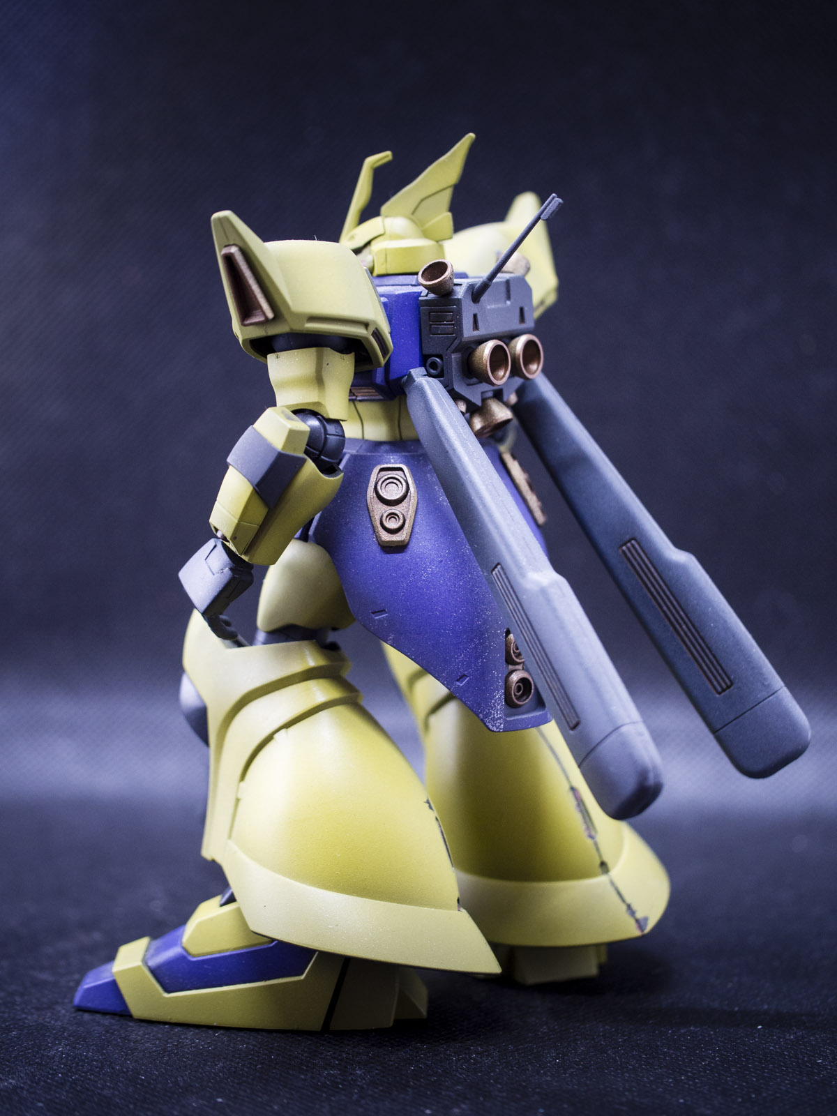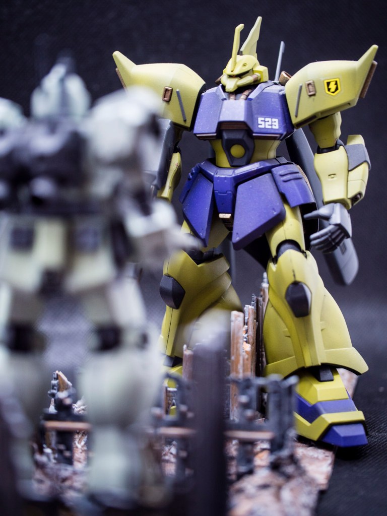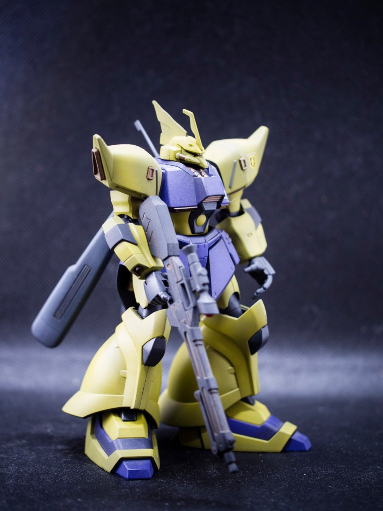 The kit itself has many large plain surfae area and lack of details but it didn’t really bother me as it is a relatively old kit. Aritculation is also barely adequate, it will stand because it has huge feet, but don’t expect and Christmas family twister game with this kit.Parts separation is also adeqaute but because some of the edges are angualr, it is not too difficult to mask. I went for a old samuria yellow purple colour scheme, which I actually quite like because it stands out among my other collections. Also I later found out it is also similar to Cima’s Gelgoog in 0083 Stardust Memories.This Gelgoog Jager was featured in “War in the Pocket” but I always get confused between this design over Cima Gelgoog Marine. At the time of my writing Galactictoys has one on sale.