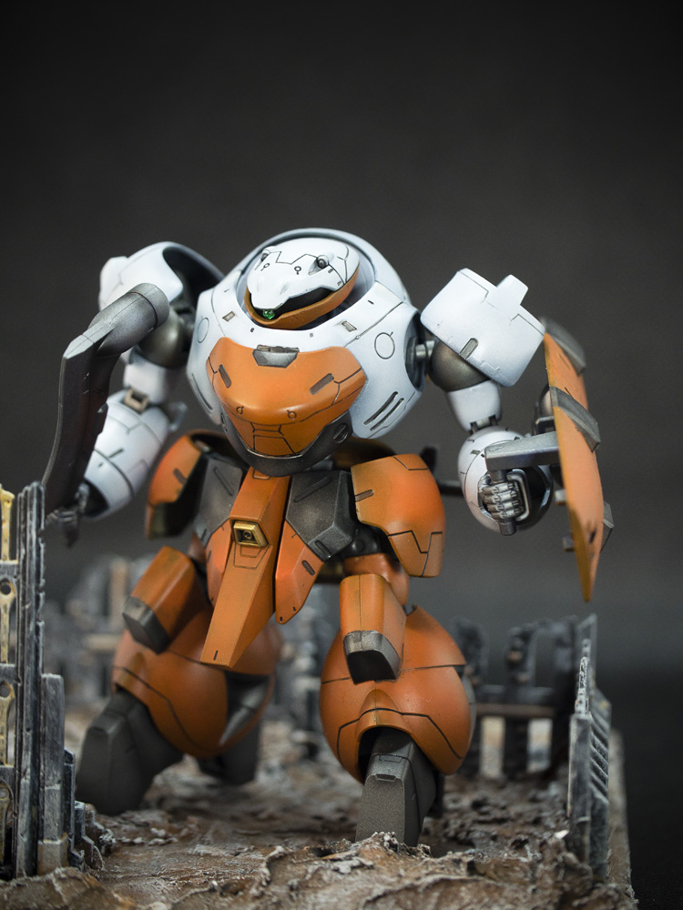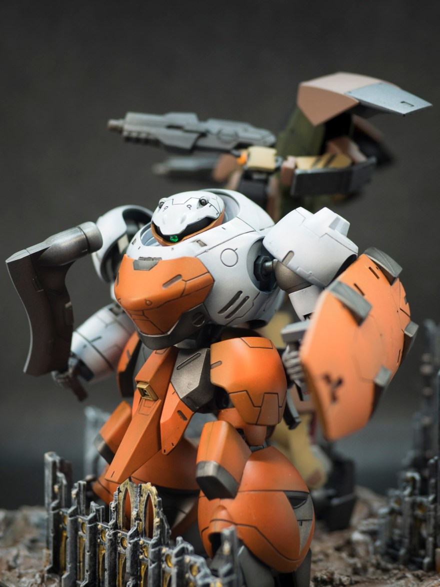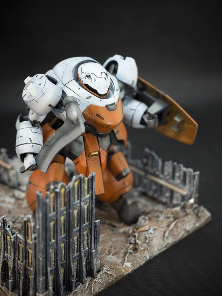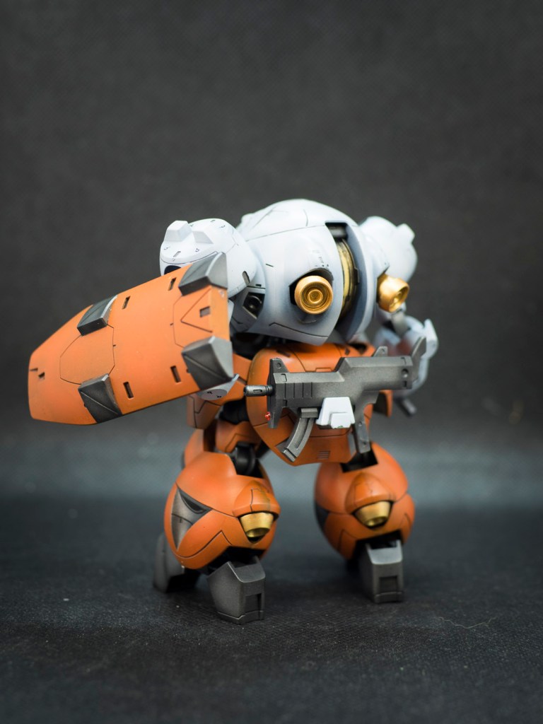 Usually I would tend to customise my kits to make it uniquely mine. But in this case, after converting it to a Landman Rodi and repainting the colour change to suit the anime. I just thought by adding a shield which has almost similar surface details would make this suit looks more like a “Security Guard!”