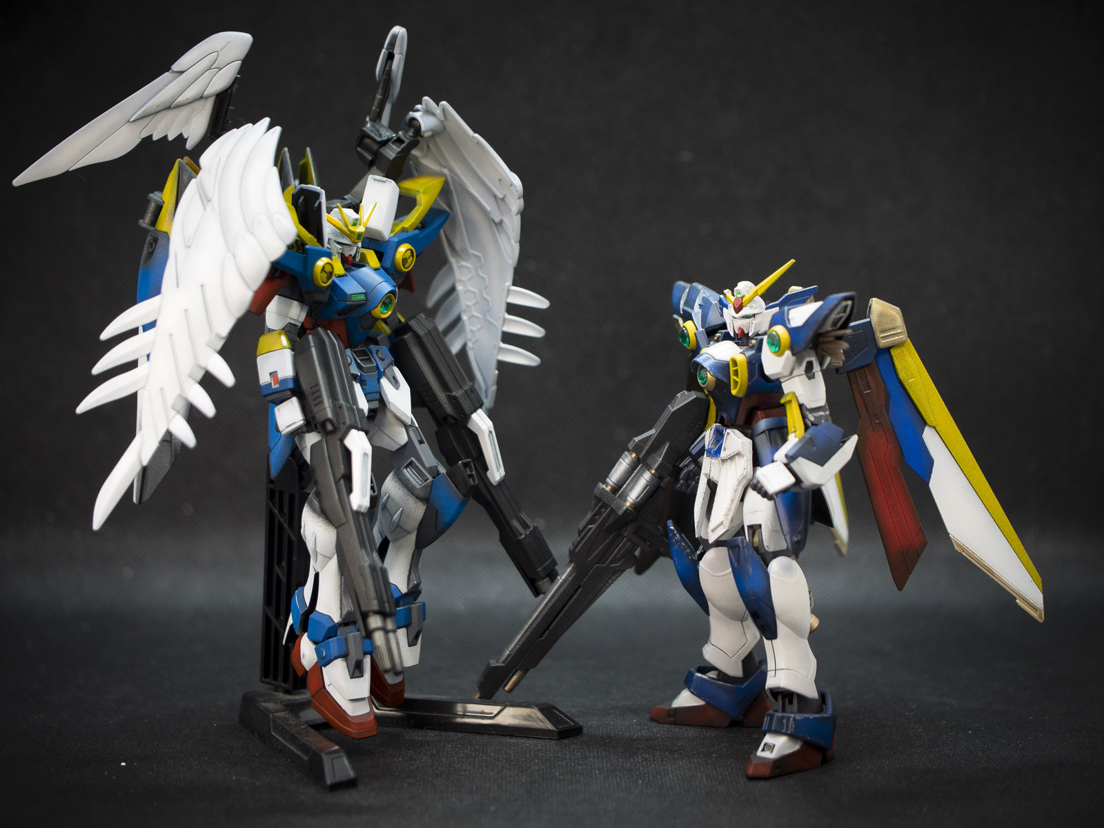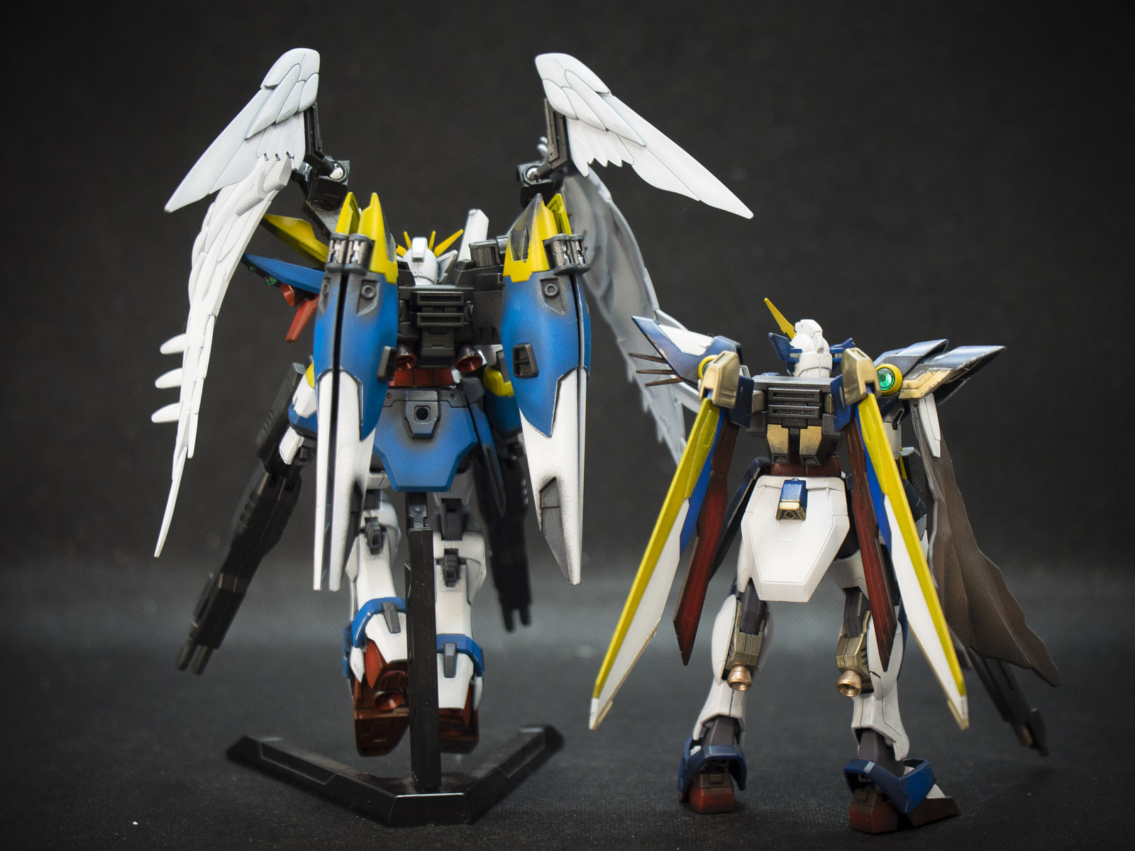 This is a side by side with my Wing Gundam (Fenice), I bought the Fenice because I like the damaged design of the kit, as it kind of reminds me of the original Wing Gundam been self-destructed and kind of try to be put back together. But as you can see both design are although similar in principle but very different in parts design.