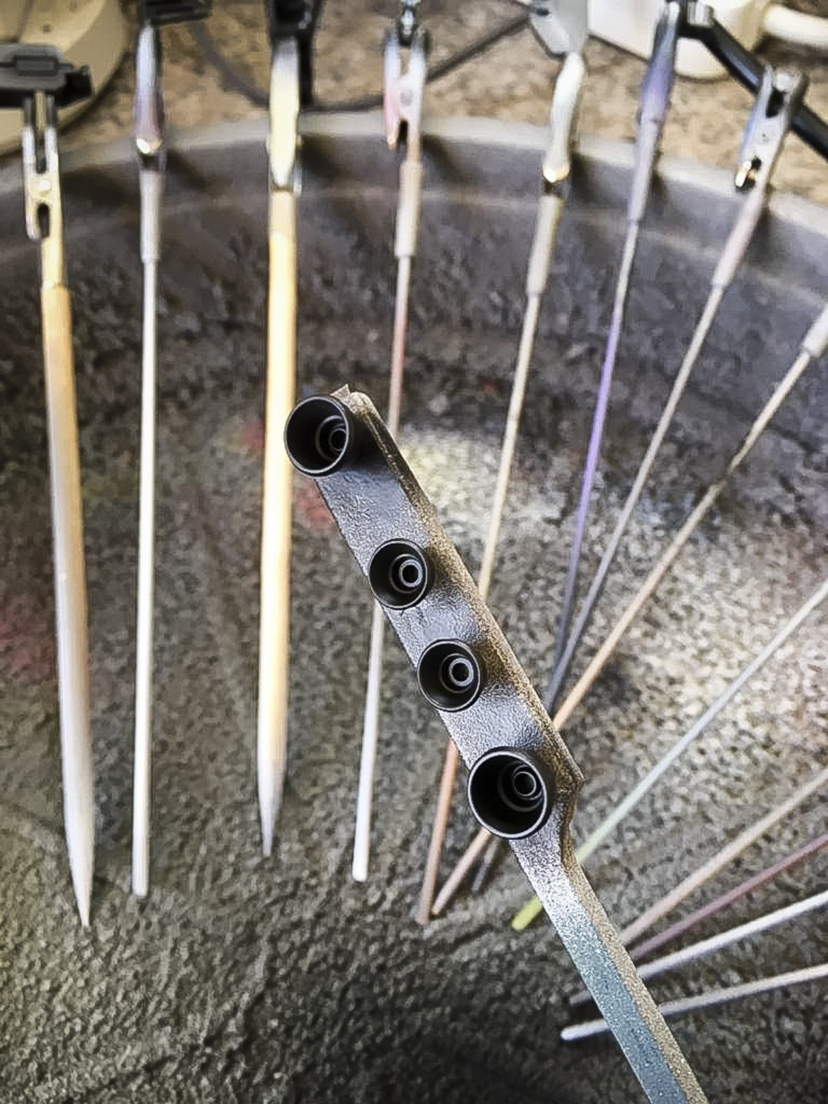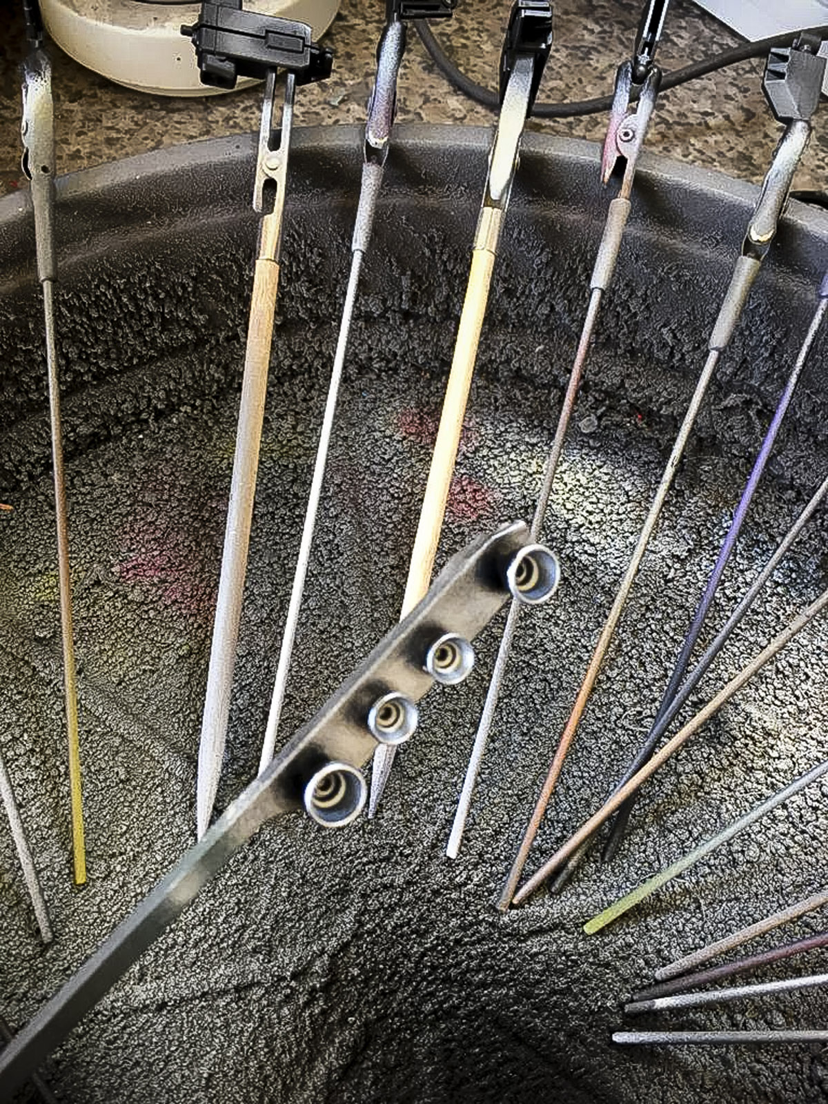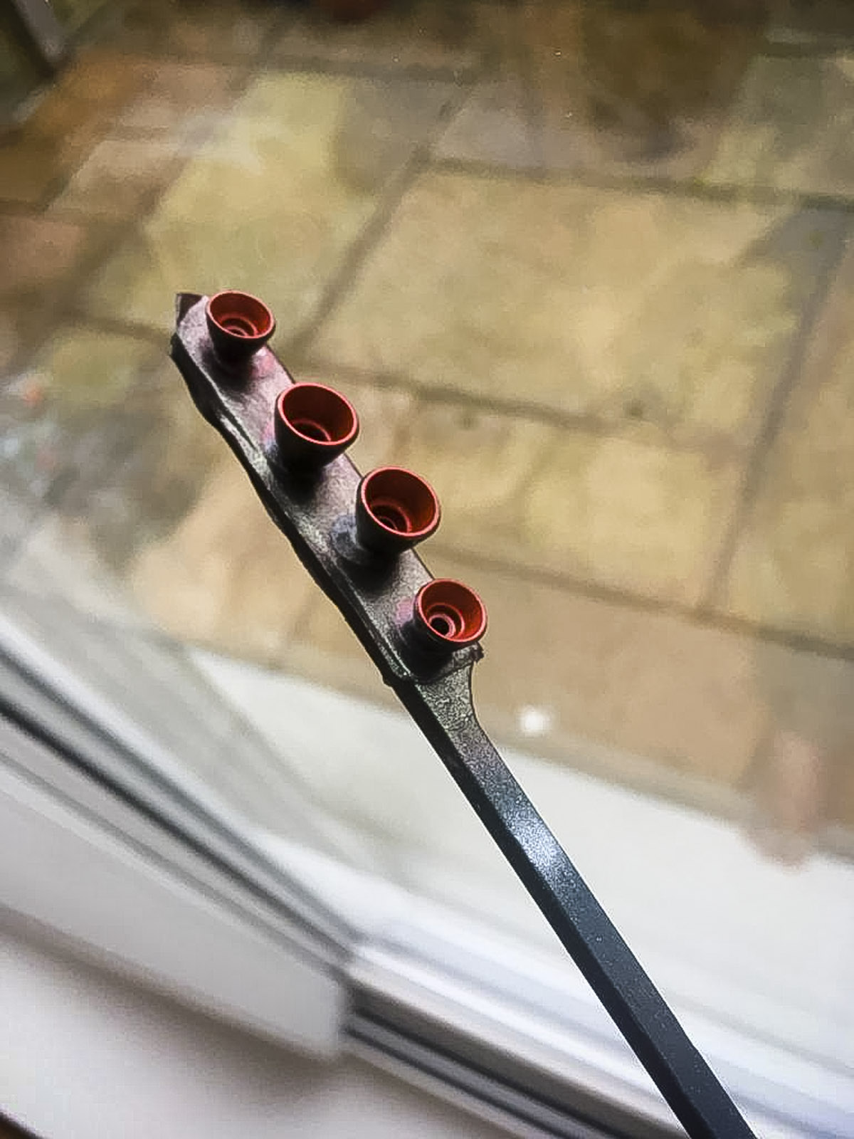 I love painting the thruster bells, I tend to use double sided tape and give it a black coat to help bring out the shine on the silver layer. The silver is to give a metallic shine to the red inside of the thruster bells. Once dried, reversed the thruster bells are sprayed the outside; this will give a nice interesting contrast to the thruster bells and help make it stand out.