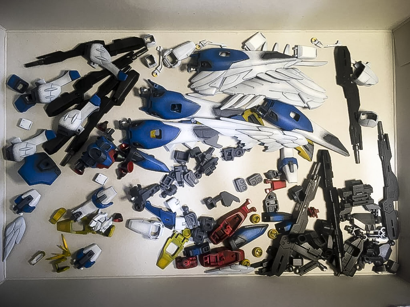 I have seen many fantastic designs from other modellers online, and many of them took the kit to a new level which I don’t think I will get there in a weeks’ time. So I thought I might as well do something different by combining the wings of the Endless Waltz version to my Wing Zero; to make my own 4 Wings Gundam!