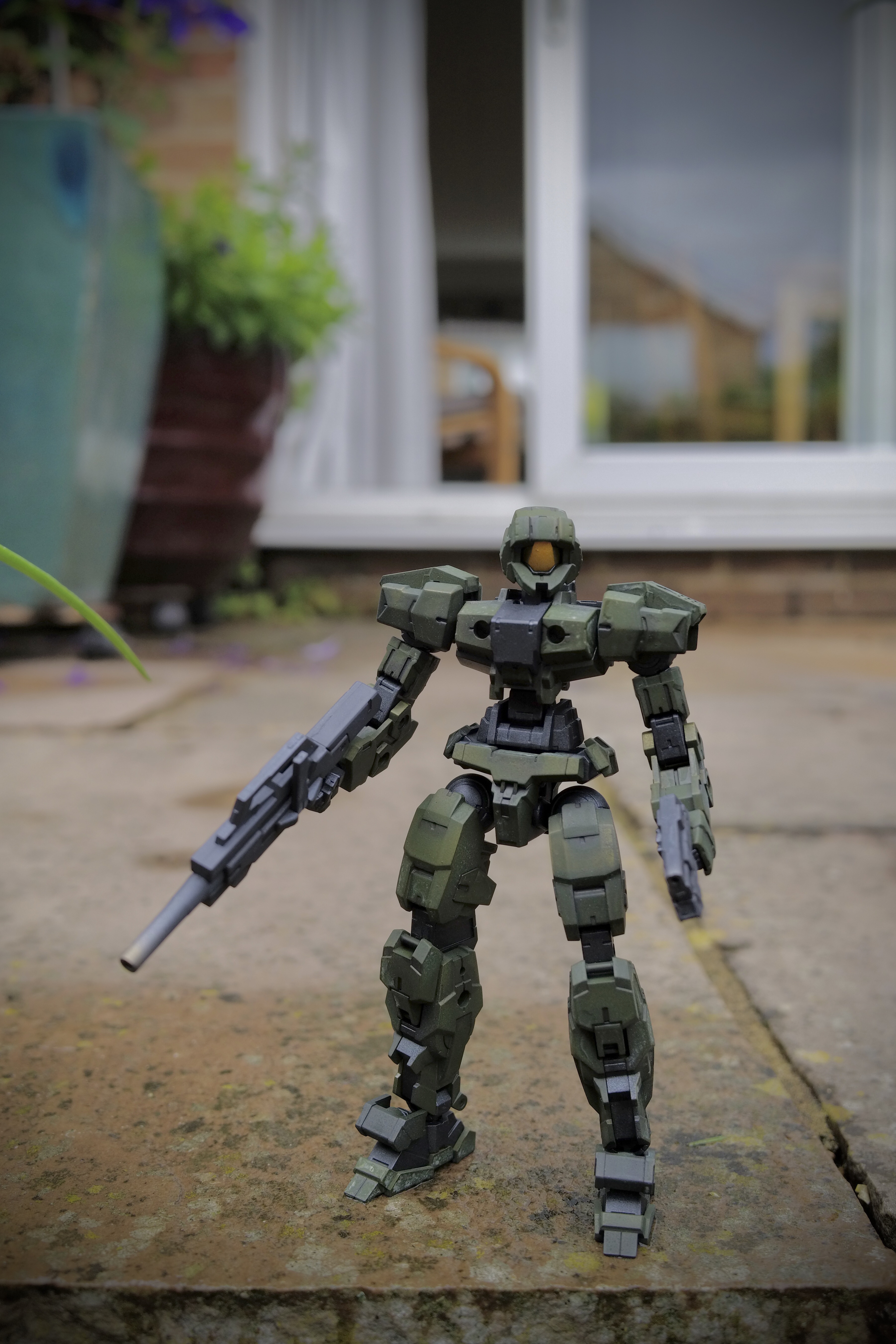 I didn’t really do much tweak but changed the visor colour to gold, and I think it does looks close enough to be John-117. The hand pistol was from a gunpla weapon pack.