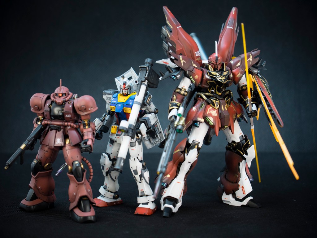 It is also observed that the Unicorn era mobile suits tends to be larger and taller when compared to the 0079UC counterpart. Below is a side-by-side comparison to my Origin Zaku 2 and RX-78-2.