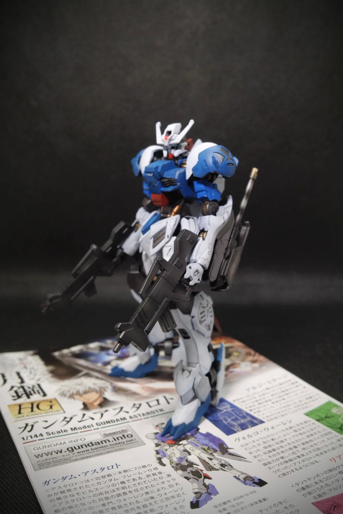 Since I already have Rinascimento which is an asymmetrical design; I bought this Astaroth kit mainly because I want to explore what it looks like in a symmetrical design. I was also fortunate enough to purchase a box of 2nd hand random HG scale bits from eBay; and in the box was another Astaroth and Barbatos Lupus! I painted my Astaroth “Akimbo” Lupus with Vallejo Medium Blue and G-Studio White to give it a non-aggressor colour. Somehow it also looked like a UN Peacekeeper for space (another space police)!