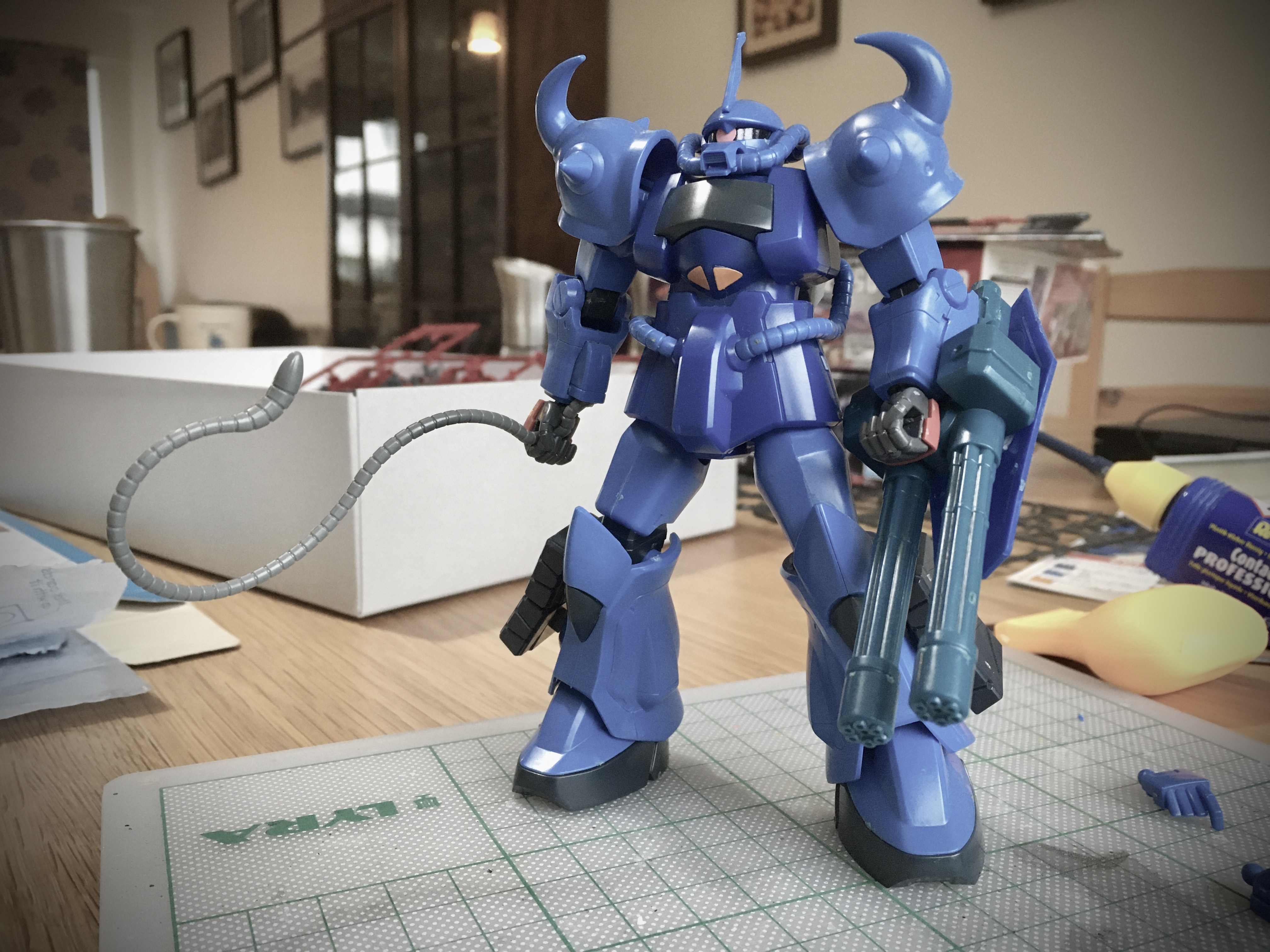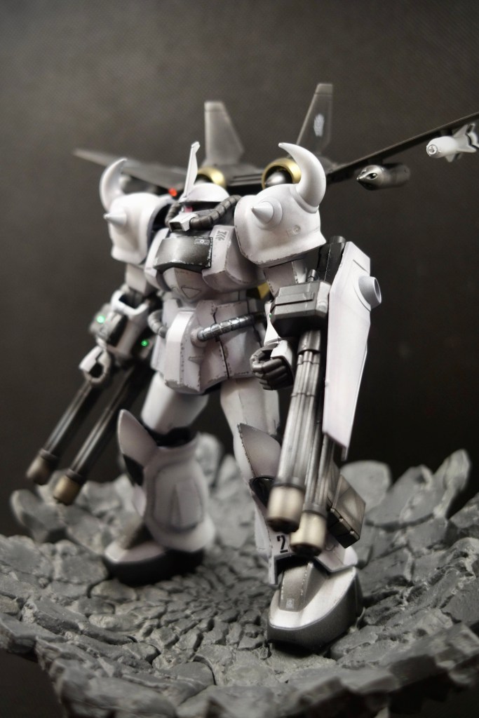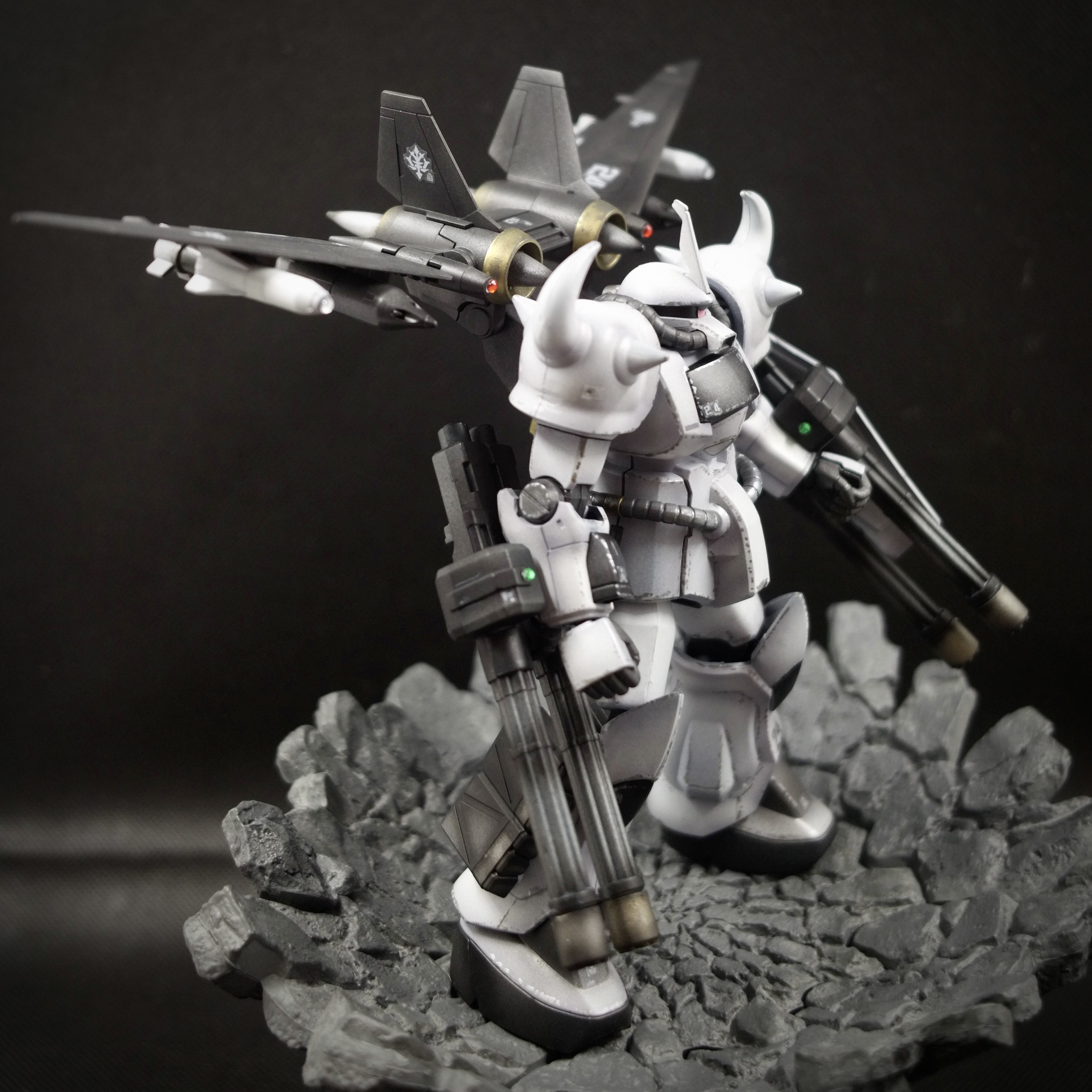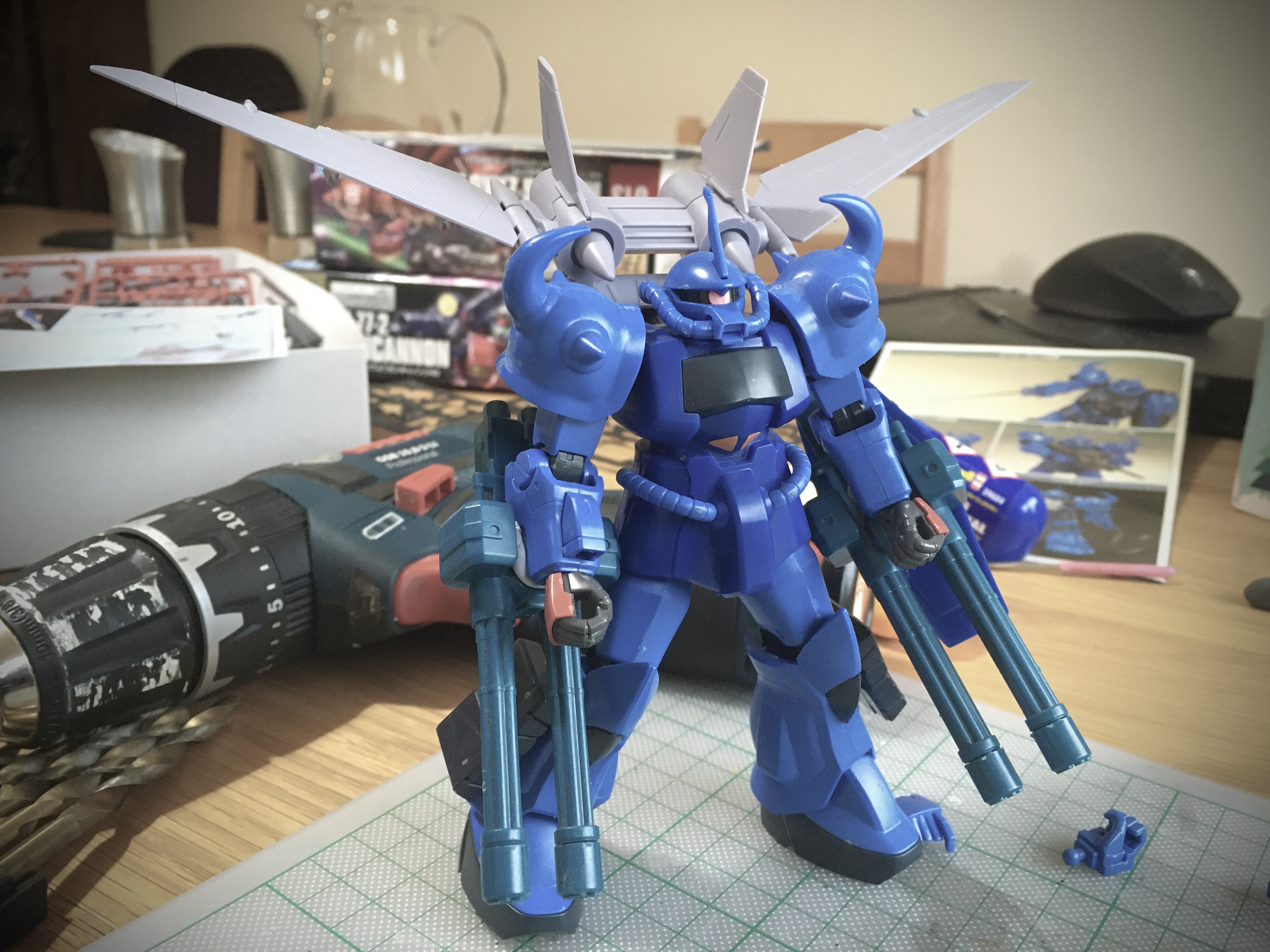 This kit is made in 2000, I bought this 2nd hand from ebay. I never really like the ‘goofy’ design especially the curvy horns! Nonetheless, I was inspired by StarWars Stormtrooper, and Zeon Zaku White Ogre and also gave it wings from Wingdam. Thus I present to you “Stormgooufer”!