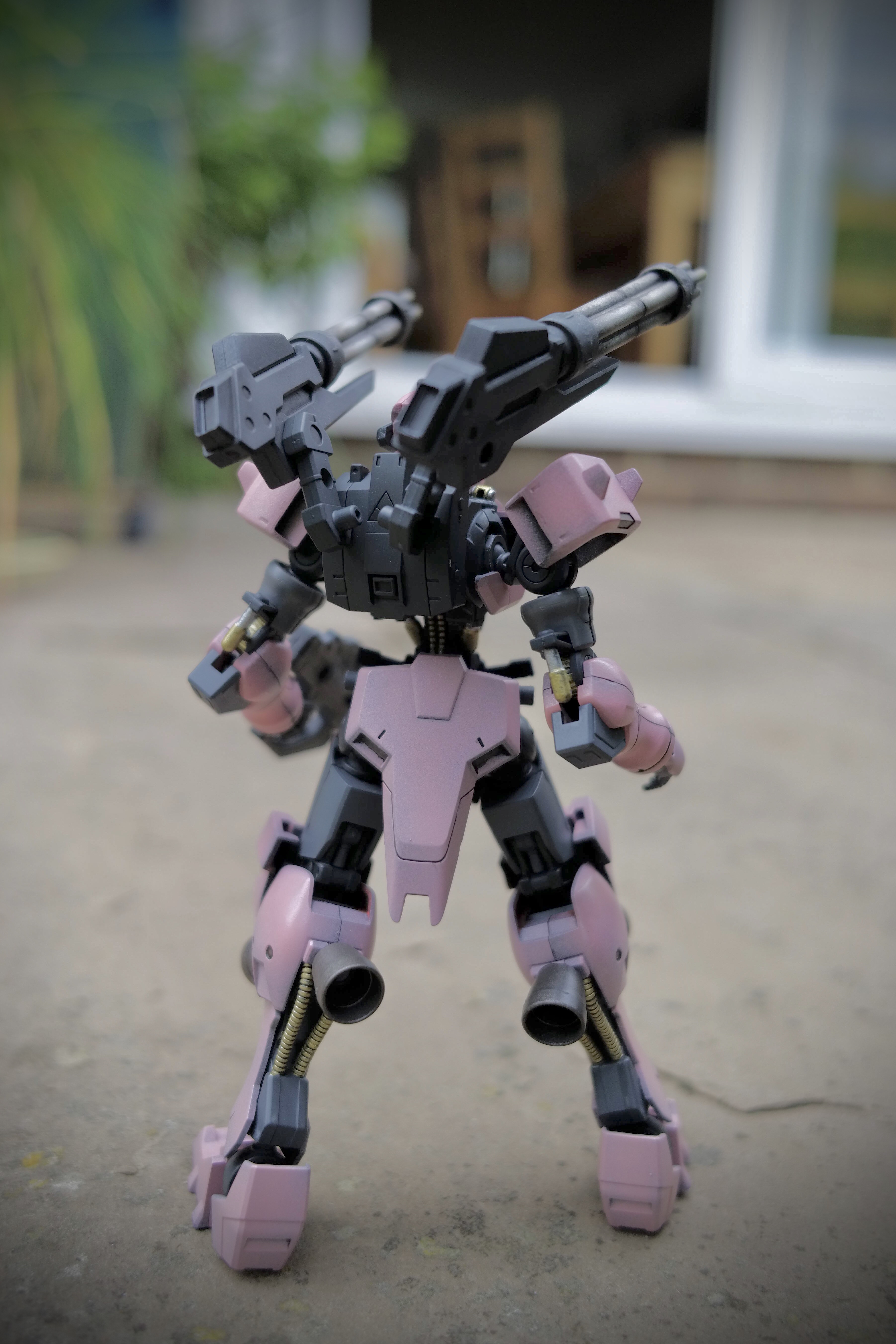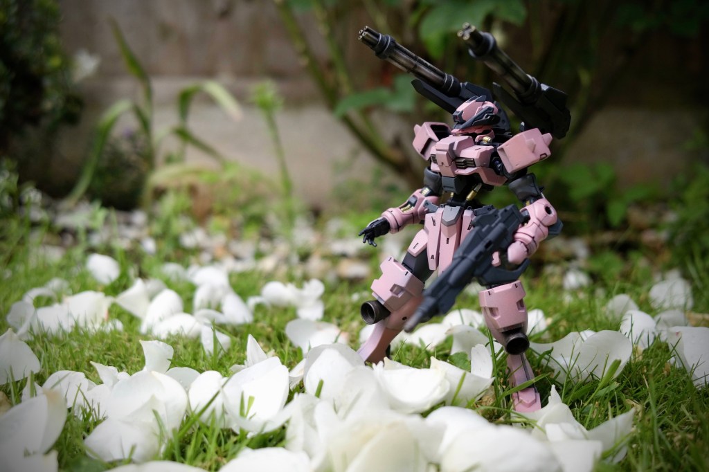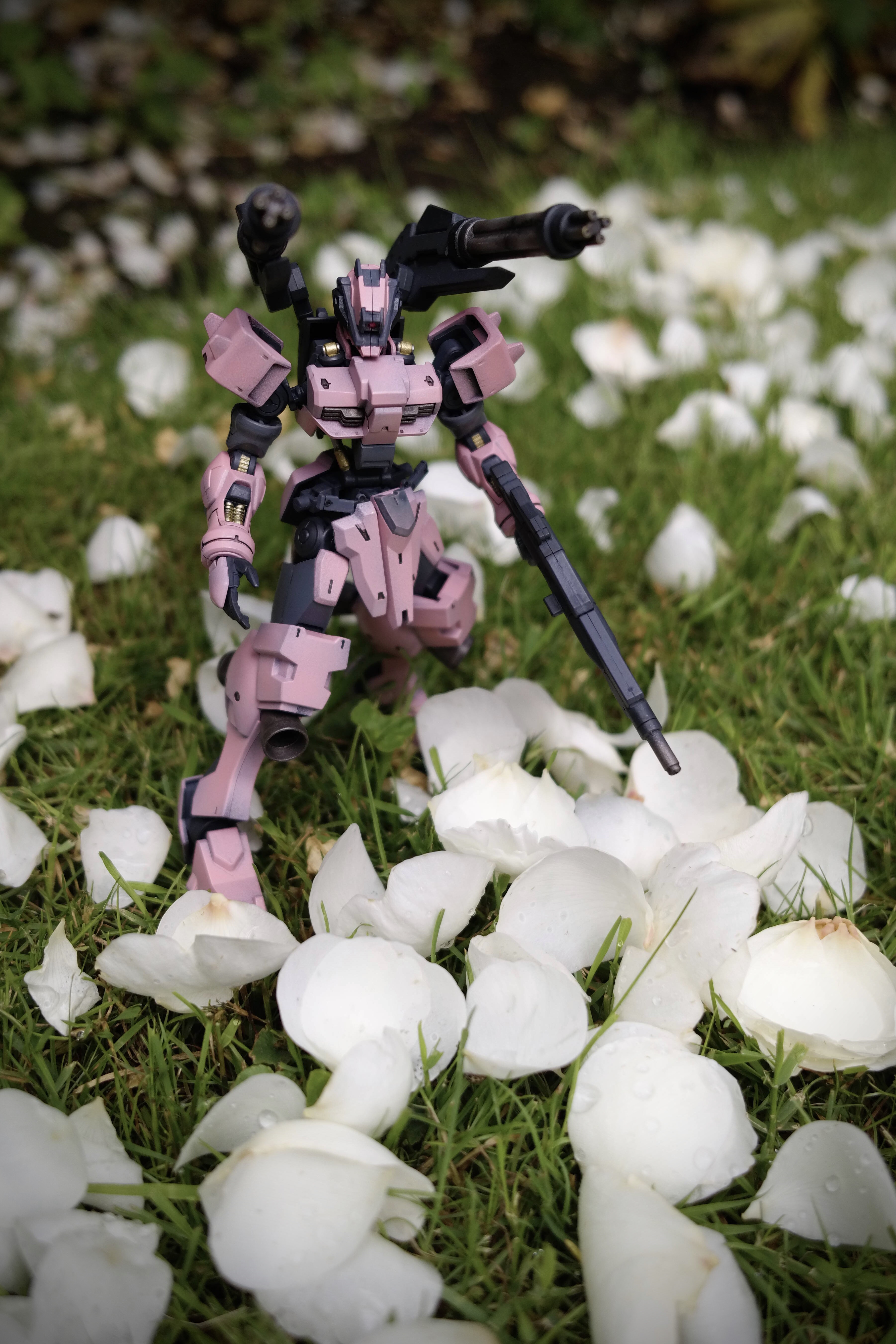 Initially, I was 2 mind about the pink scheme, so I thought I will sleep over it. The next day under the natural light I was surprised it looks actually quite nice and it is a nice contrast over the rest of my whitish/blue gundams collection.