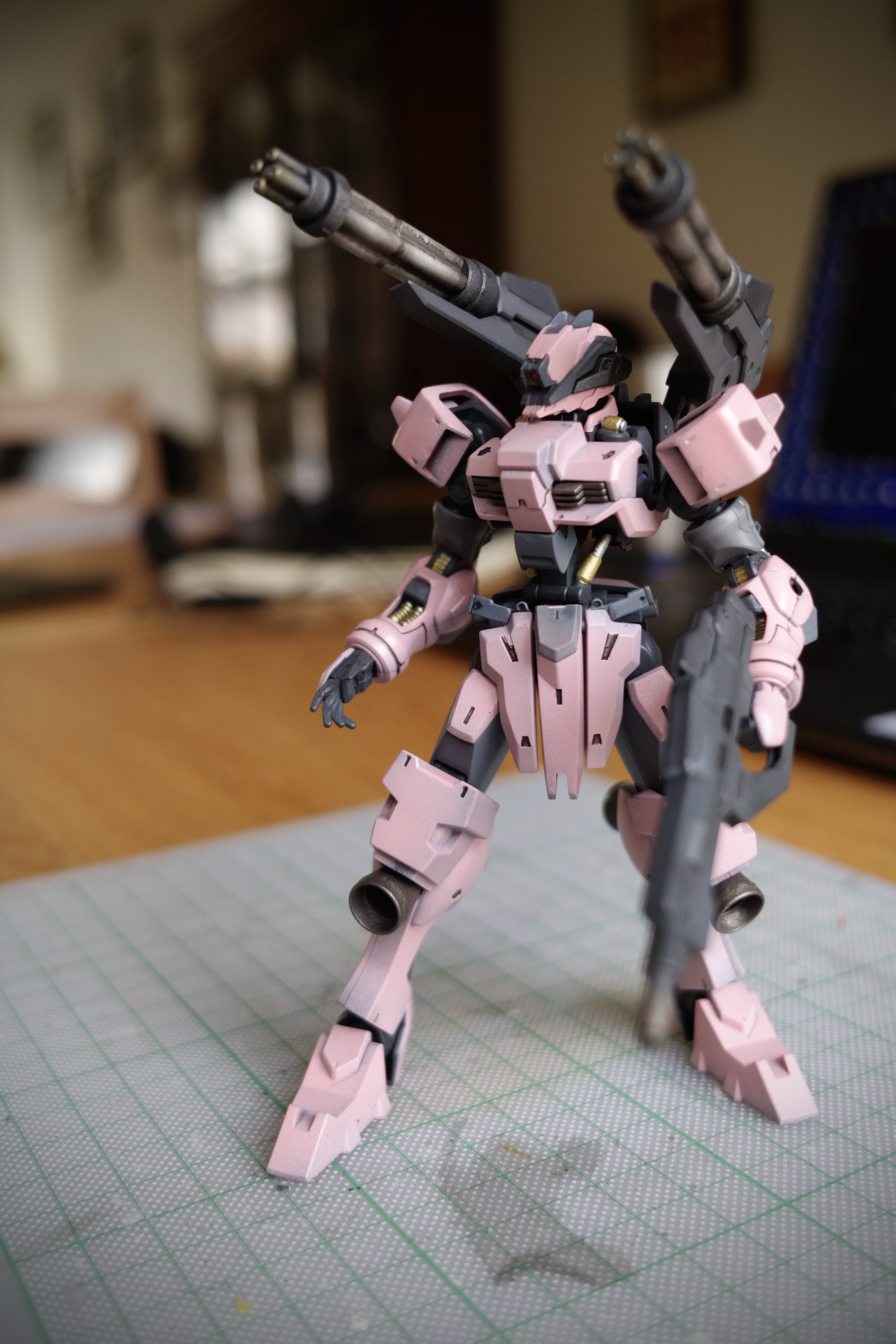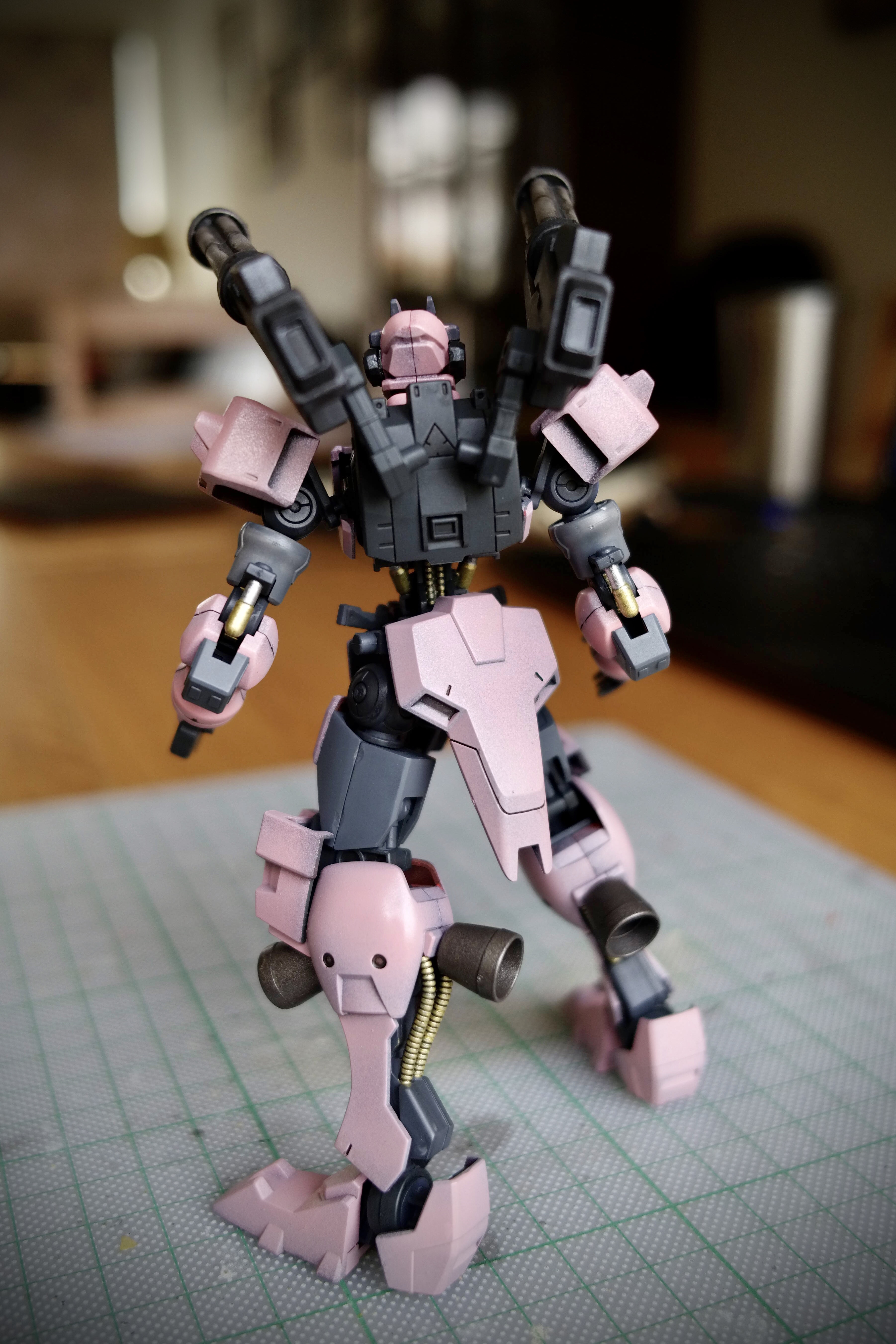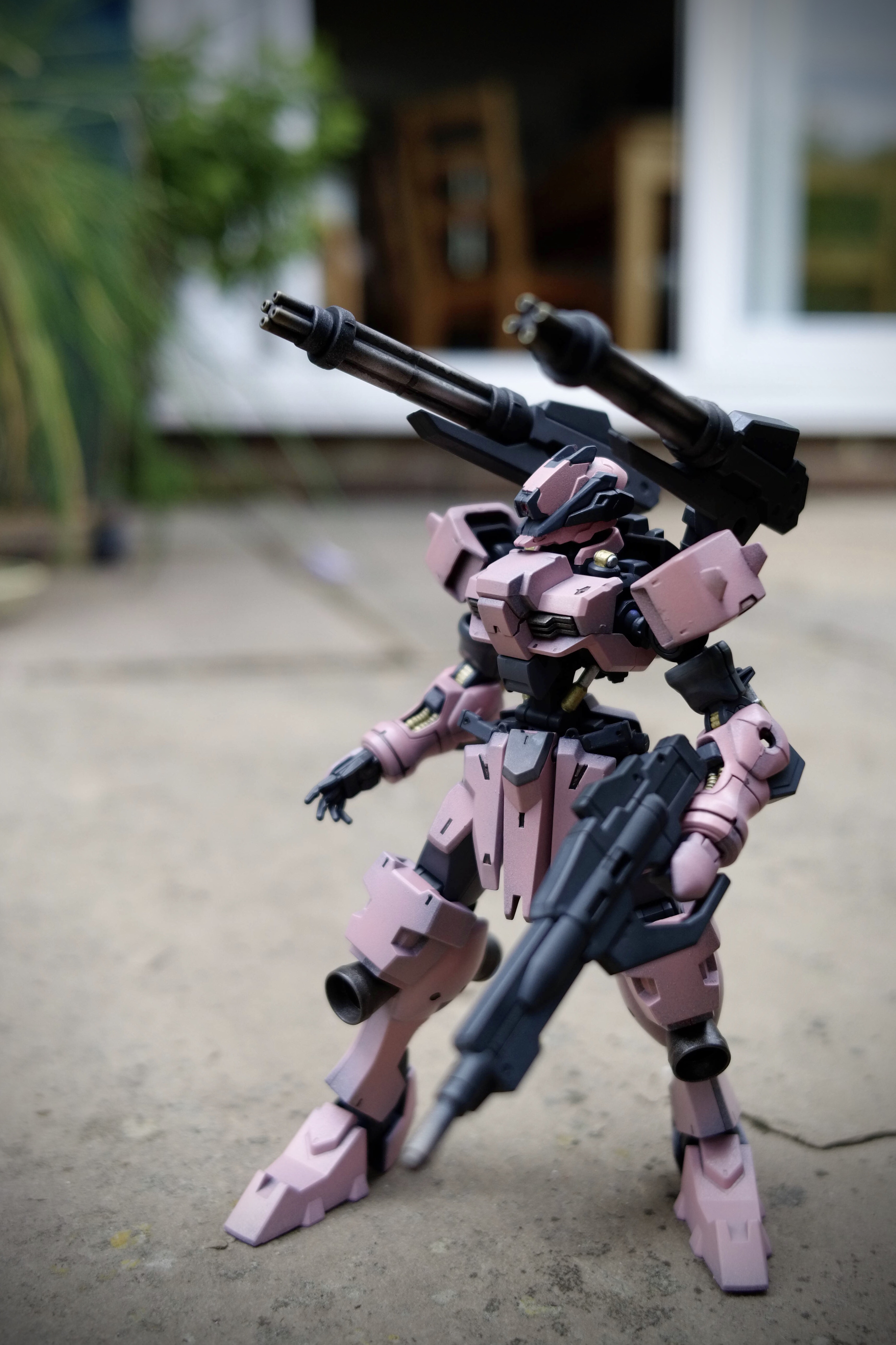 Initially, I was 2 mind about the pink scheme, so I thought I will sleep over it. The next day under the natural light I was surprised it looks actually quite nice and it is a nice contrast over the rest of my whitish/blue gundams collection.