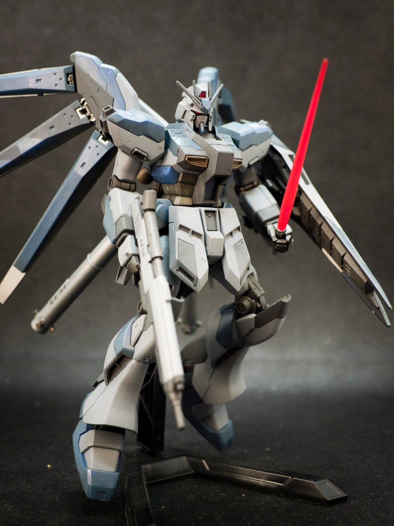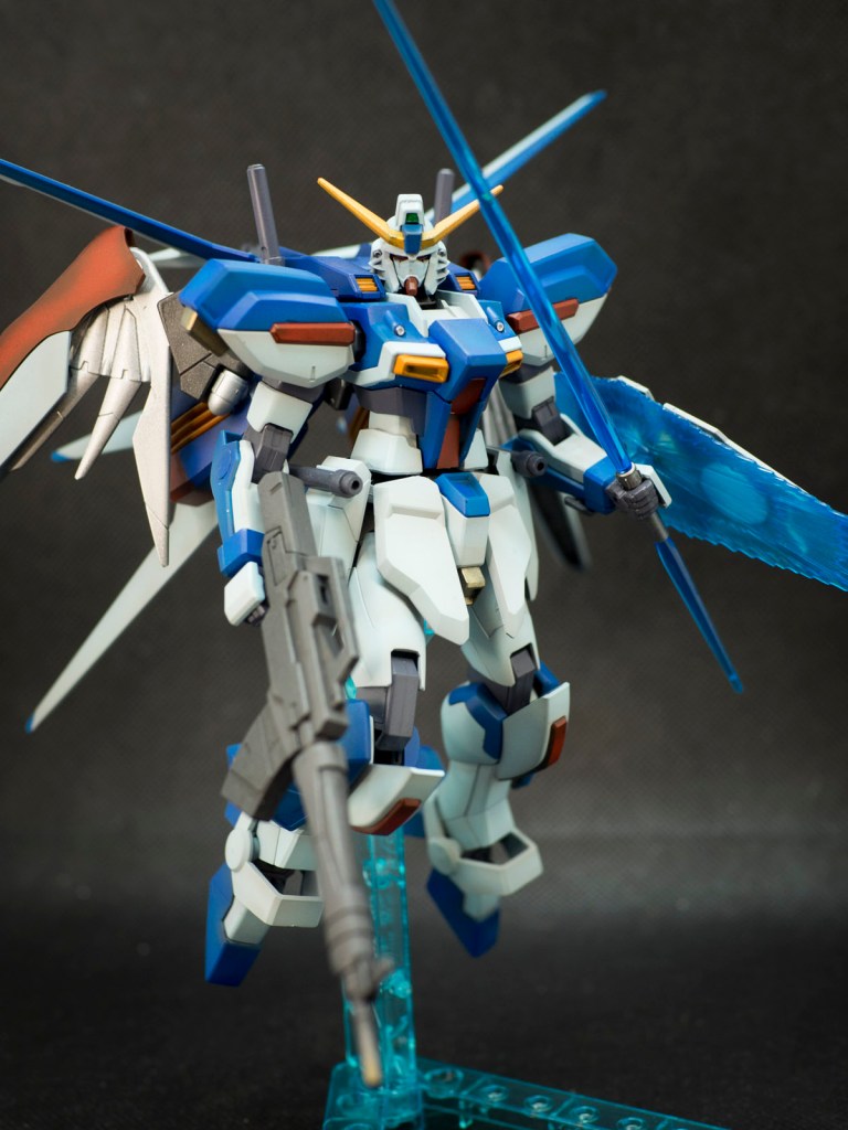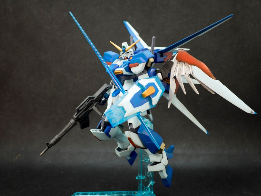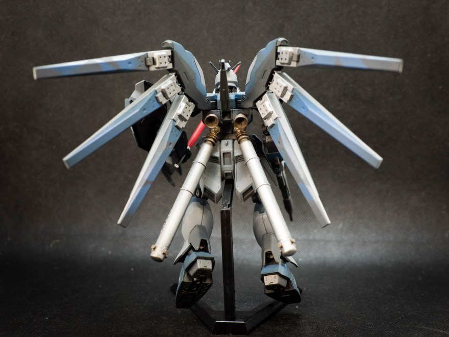 The double Beam Cannon made this Gundam very back heavy and thus I am not able to get it to stand on its own; luckily I have a few spare stands to use.