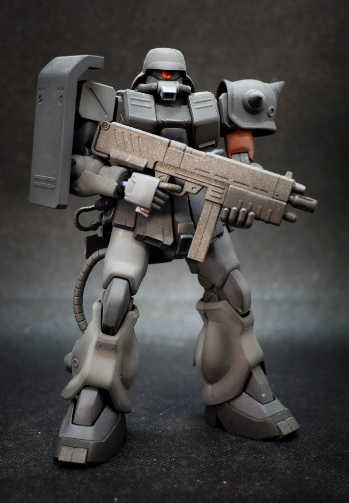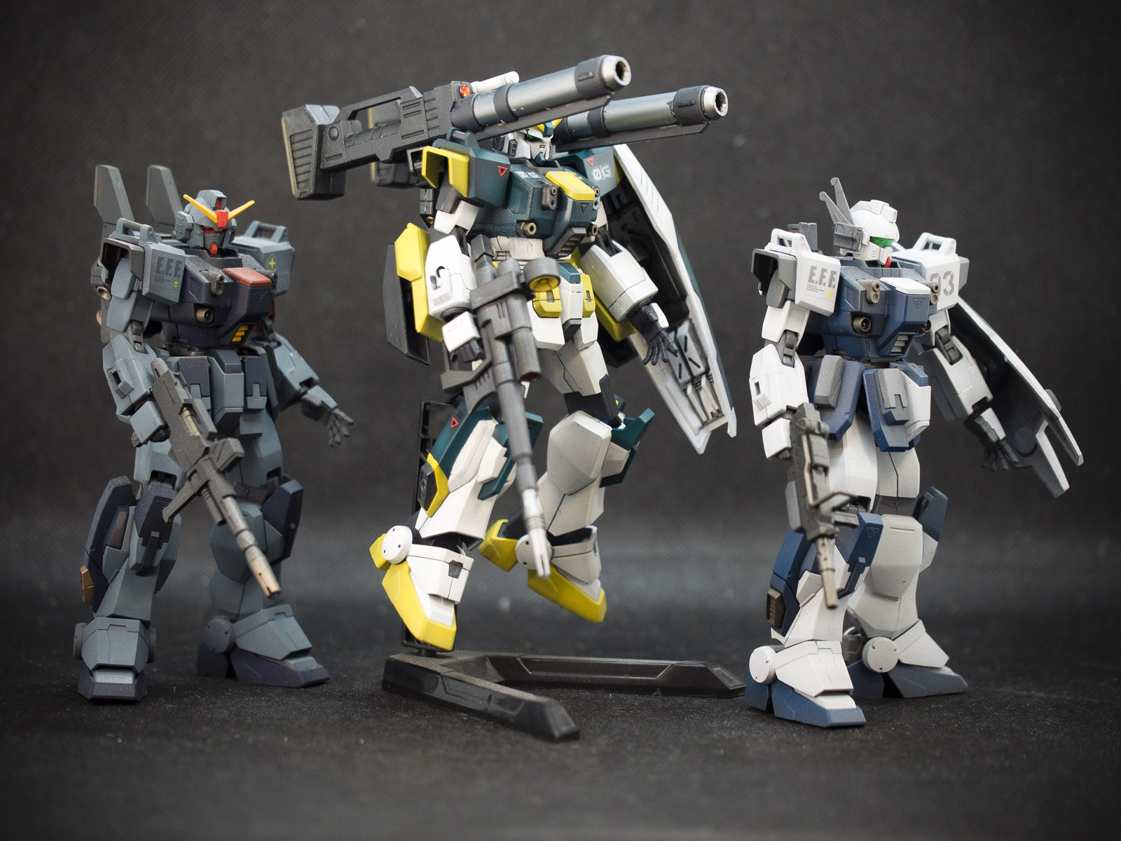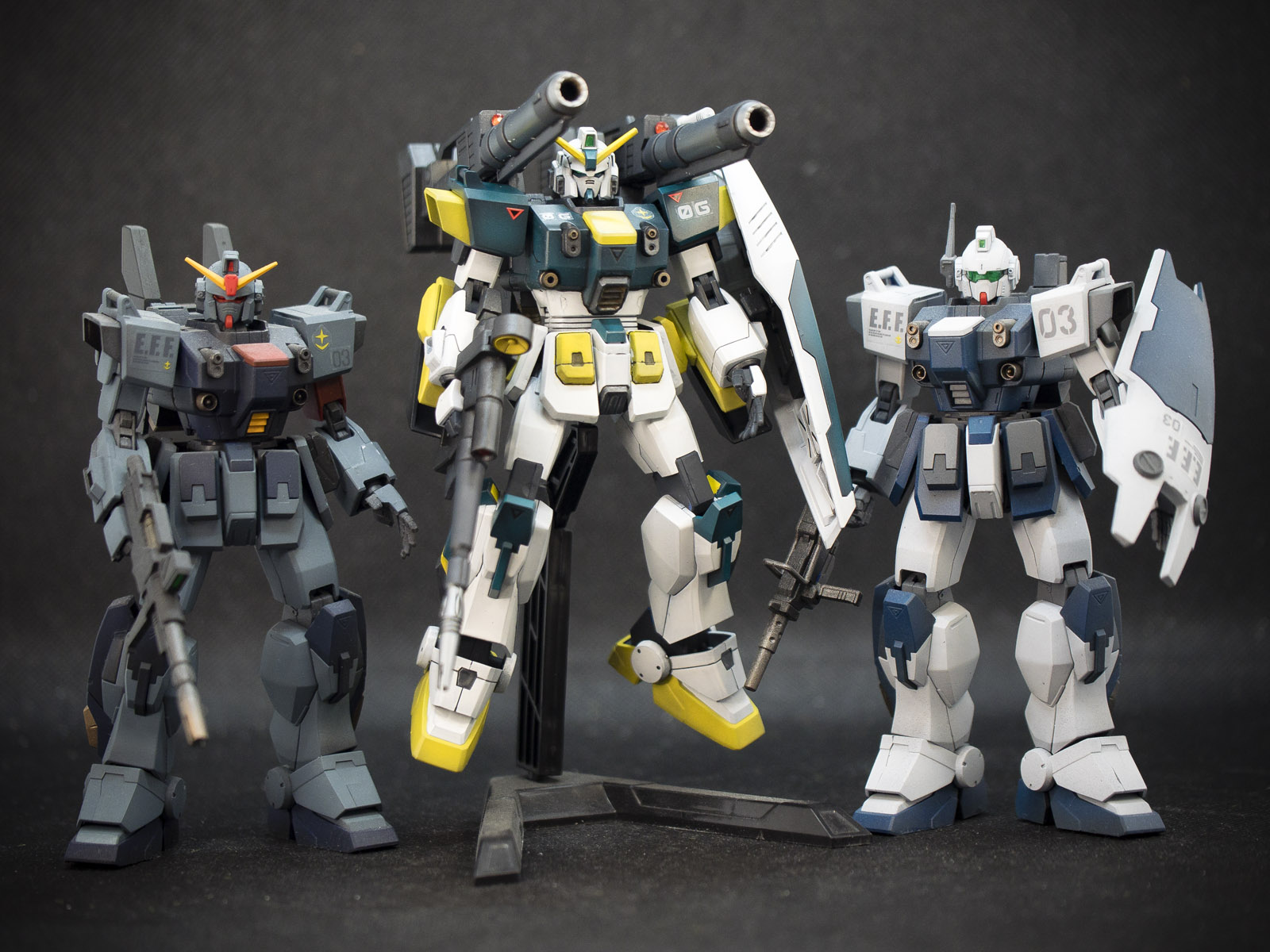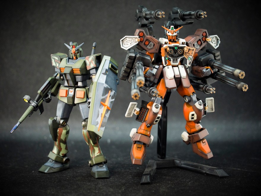 This is a side to side comparison to other “grunt” mobile suits from the anime. From the left is one of my favourite Zaku 2 variant, and the right is my GM Type C.
