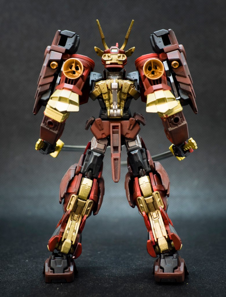 I bought this Sengoku Astray with anticipation that I will make it into a Musha Gundam look alike. I technically did acheived my idea and I liked the coloured scheme, but the reason it is in here because I really dislike the colour I used on the mouth piece; it is too dark to and hence it hides the face. I tried to painted it with red to bring it out, it works a bit but it does not improve the visibility. Sigh!
