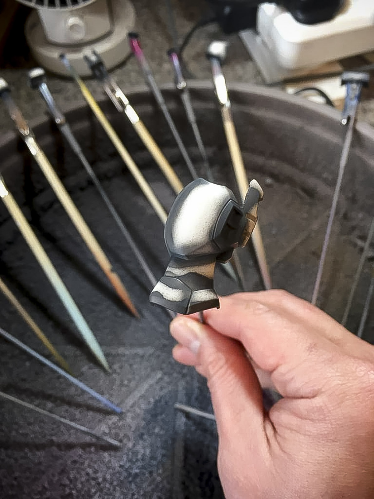 Before doing Gunpla seriously, I tend to do a lot of scale models and sometimes harsh panel lining are not appropriate hence I used pre-shading to help bring out the details and parts separations. In this case, the Wings are majority white hence it is crucial to help lift the details up by giving it a high contrast between black and white. To help tone down the pre-shade it is best to coat the parts with several layers of paint one at a time; for the wings I used 3 layers of white.