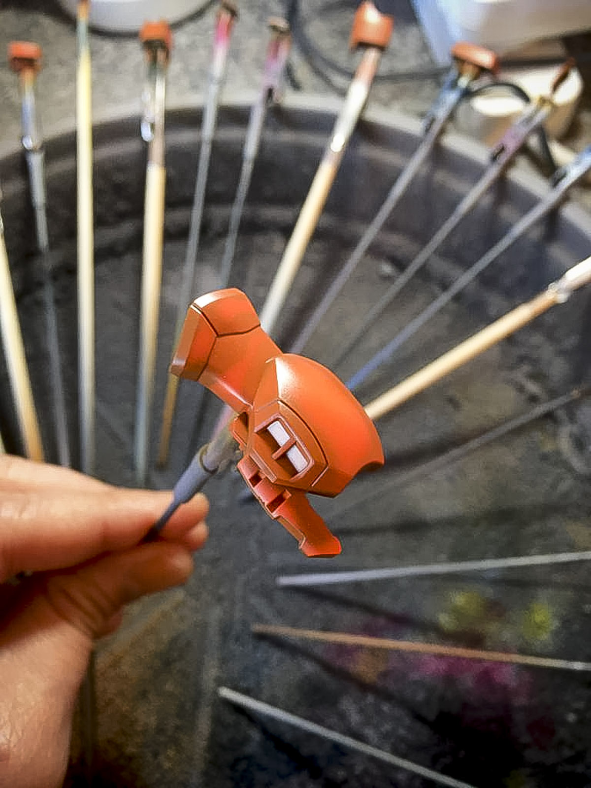 I am usually into kitbashing and modify mine kit to give it a personal spin, but I struggle to come up with a better idea other than to paint this to how I remembered it when I was much younger watching the anime. I also gave it a beam rifle from my Hazel.
