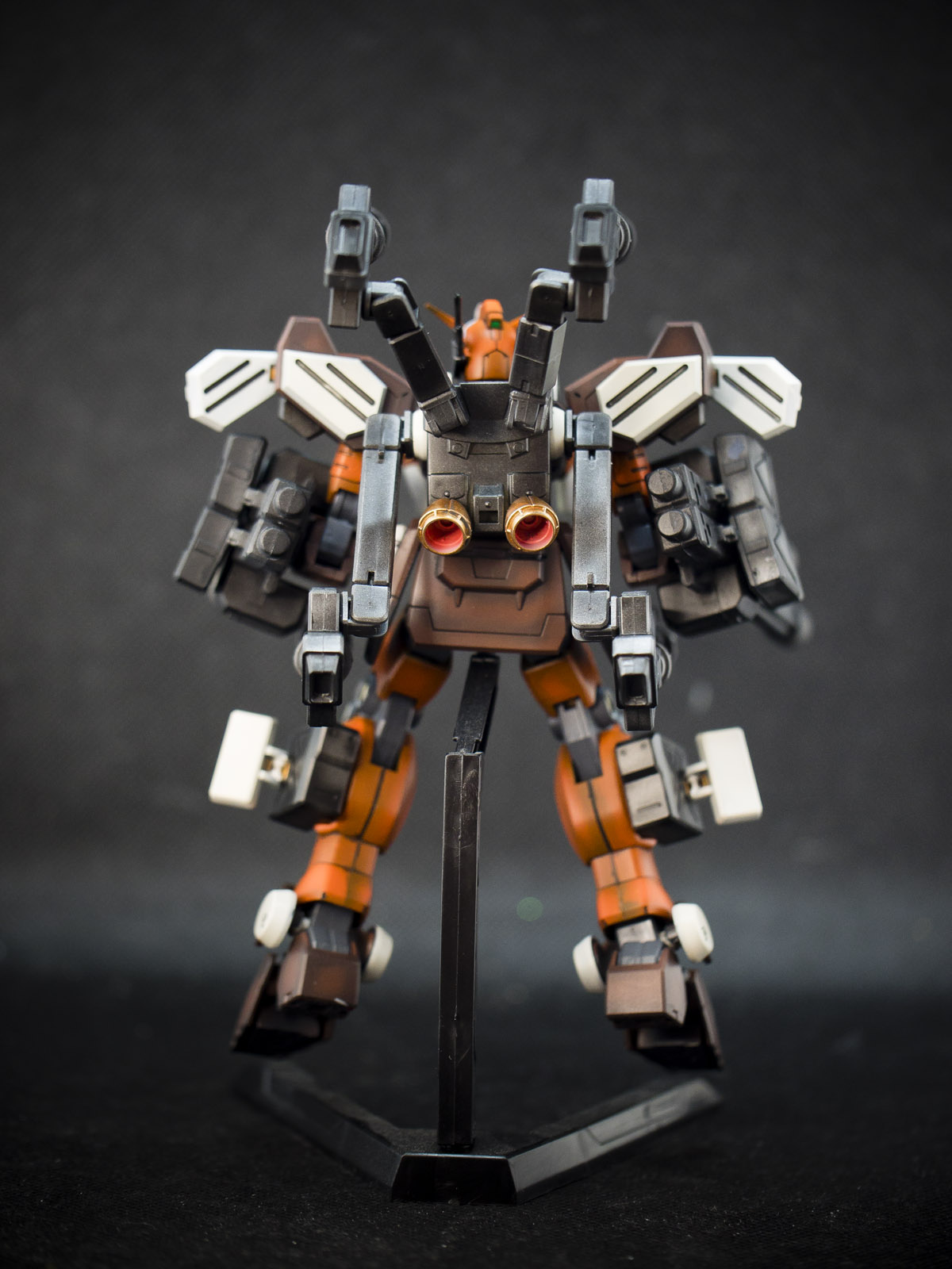 The articulation of this suit is typical of a HG, I am not saying it will do splits and some “Kung Fu” poses, but as a long range support, I think I am quite happy with the pose I have set. Parts separation for painting is actually not too bad; I am able to achieve the colour scheme I intended without the need of much masking.